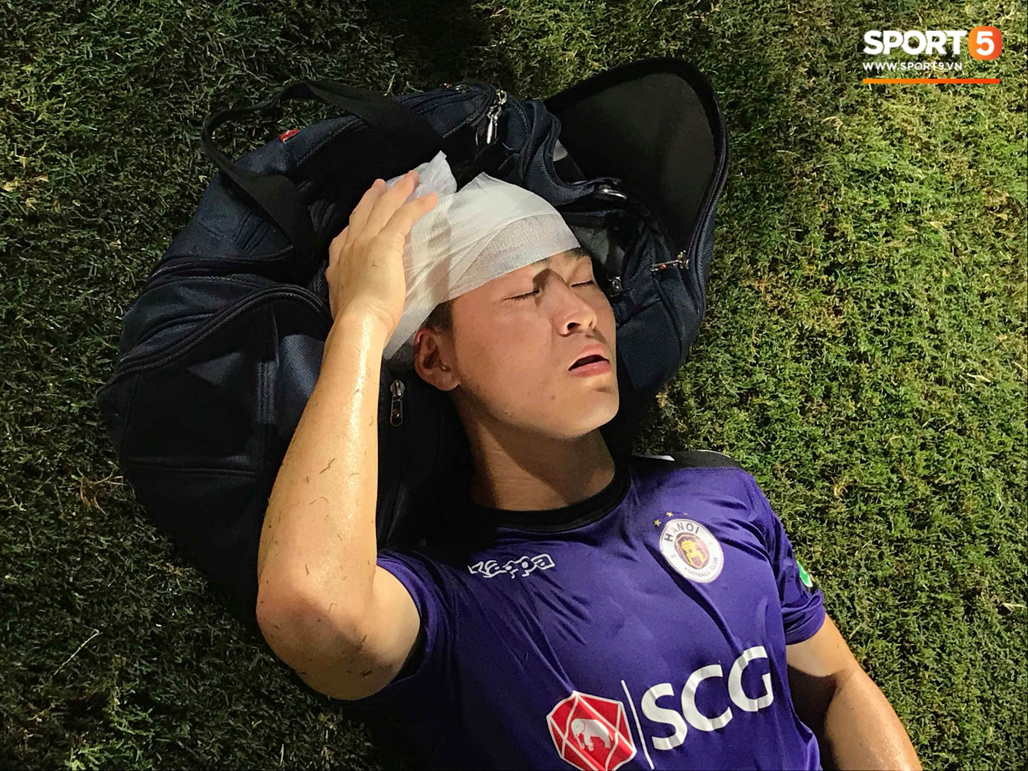 Về phía Hà Minh Tuấn, chấn thương khiến anh bất tỉnh, phải nhập viện cấp cứu cũng đã qua cơn nguy hiểm. Theo thông tin từ chính Hà Minh Tuấn cung cấp, anh đã có thể trở về CLB để nghỉ ngơi và theo dõi tiếp chấn thương. Ảnh: Tiến Tuấn.